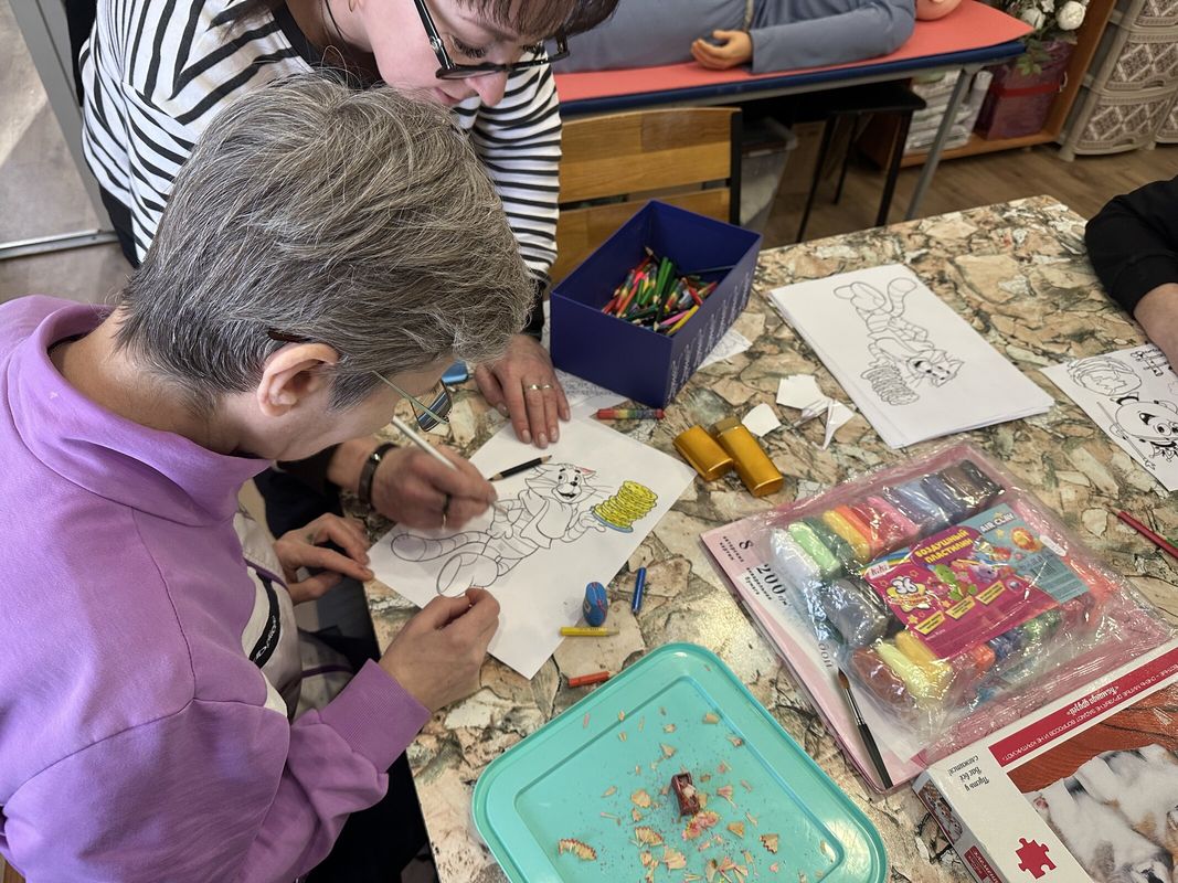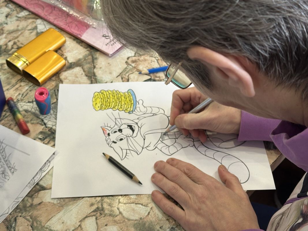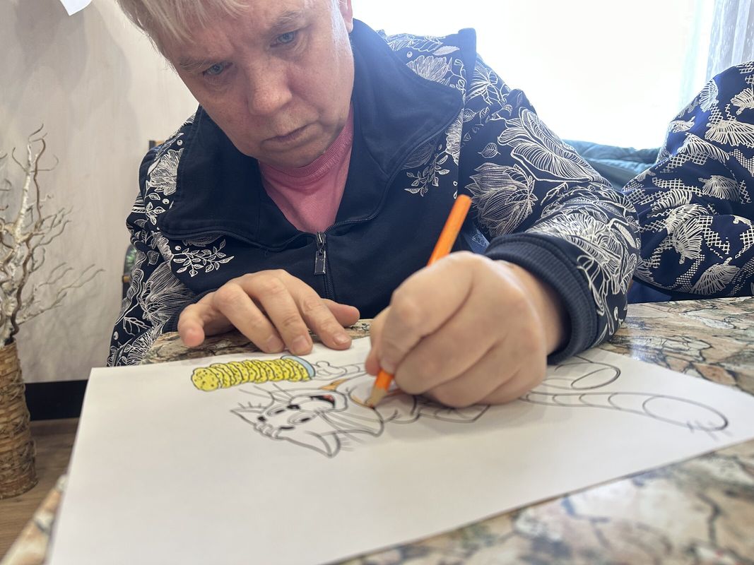 Рисование любимых персонажей из мультфильма всегда приносит удовольствие жителям Подлесновского дома-интерната.