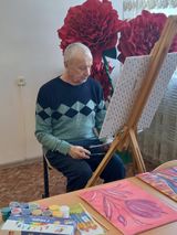 В ГАУ СО "Подлесновский дом-интернат для престарелых и инвалидов" проживает удивительной судьбы человек. Его биография полна драмы, интересных и удивительных фактов. Першин Виктор Федорович. Родился в с.Каменка Саратовской области, окончил среднюю школу, физкультурный техникум, работал тренером, занимался архитектурой, дизайном, отделочными строительными работами. С детства увлекался рисованием, в школе рисовал патриотические плакаты и оформлял сцены. Дружил с художниками. Любовь к искусству привела Виктора Федоровича в Рязанскую область, где он делал архитектурный проект и восстанавливал храм в с. Старостеклянное Спасского района. Там же делал списки-репродукциии по образам икон. Далее участвовал в оформлении музея боевой славы 147 Гвардейской дивизии. Перед Олимпийскими играми собирал объект из мозаики по эскизам. В Белоруссии работал художником-оформителем, готовил макет музея партизанского движения Полесья. В доме-интернате продолжает свою художественную деятельность, является волонтером, помогает проживающим в изобразительном искусстве, является членом кружка "Жизнь в красках". В планах у Виктора Федоровича выпустить авторскую книгу "Дом, построенный своими руками", с предлагаемыми проектами и технологиями.